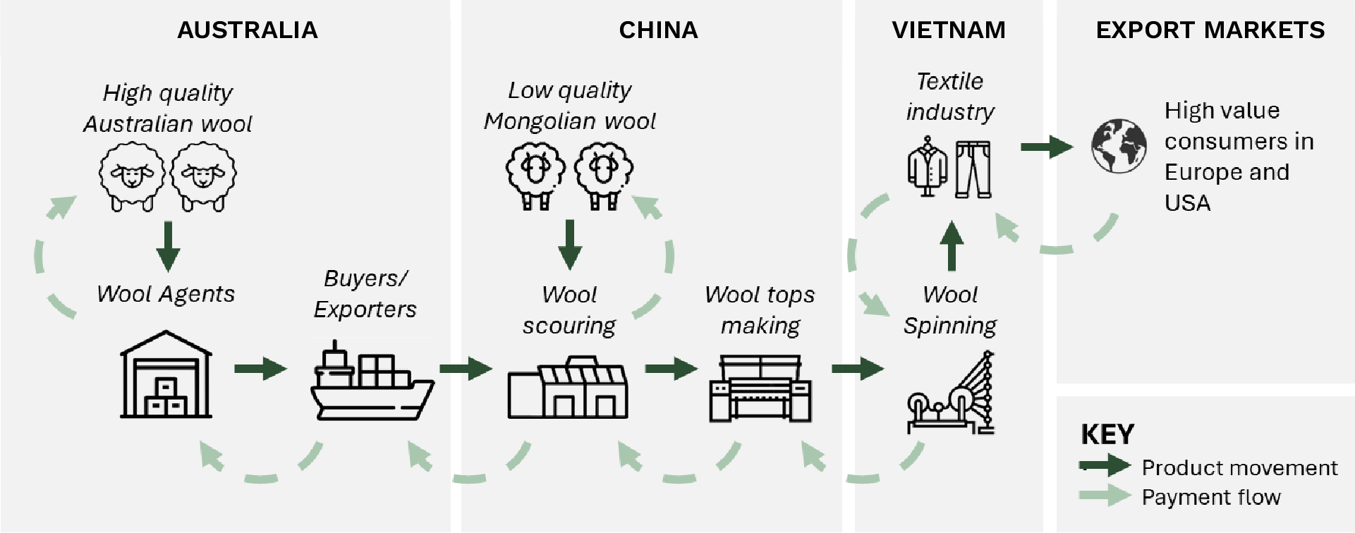 By reaching further into the wool supply chain, the Australian wool industry can diversity its markets, reduce logistics costs, capture additional value that allows a return domestic processing to Australia at the same time.